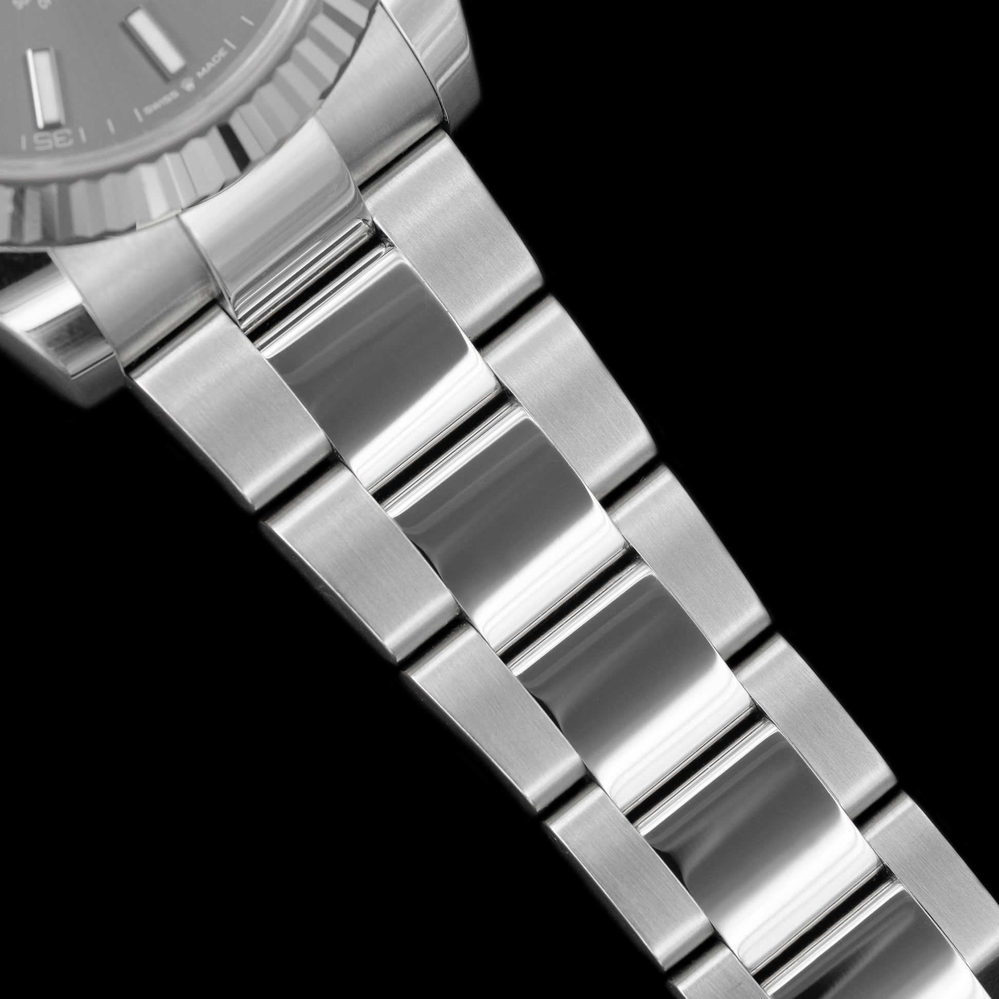 Equipado con un movimiento automático de alta precisión, probablemente el calibre 3235, ofrece funciones de hora, minutos, segundos y fecha con lupa Cyclops. Su resistencia al agua lo hace adecuado para el uso diario y actividades acuáticas moderadas. Se presenta generalmente con un brazalete Oyster de acero inoxidable y un cierre desplegable Oysterlock con sistema de extensión Easylink. Como producto de lujo, el 126334 refleja la calidad y prestigio asociados con la marca Rolex, siendo una opción popular entre los entusiastas de los relojes que buscan elegancia y funcionalidad.
